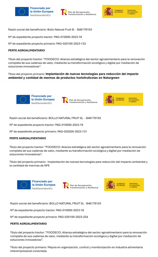 Los siguientes proyectos, enmarcados dentro de la convocatoria del PERTE Agroalimentario, se han realizado con el apoyo del Ministerio de Comercio, Industria y Turismo: